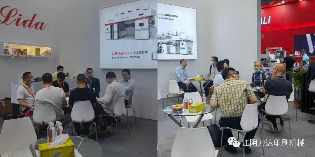在“碳中和”、“碳達峰”、“限塑令”升級下的橡塑行業(yè),發(fā)展循環(huán)經(jīng)濟、節(jié)能減排等正當其時。這不僅僅是各界熱議的話題與挑戰(zhàn),更暗藏著巨大的新市場、新機遇,眾多新能源、5G、新材料等企業(yè)聞訊而來。開展四天來,許多觀眾紛紛來到展臺進行商務洽談,其中公司最新研發(fā)的LDF 450型多功能復合機以及LGF 450型干式復合機收到了客戶的廣泛關(guān)注,咨詢客商不斷。該機型最高機械速度為450m/min,支持無溶劑、網(wǎng)線輥、半柔版、定點涂布等多種涂布方式,實現(xiàn)一機多用,為客戶節(jié)約更多的成本,實現(xiàn)更高的經(jīng)濟效益。